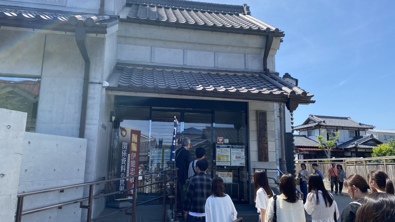 昼食後、まちあるき①としてかき氷のスタンプラリーを体験。夏の集客の有効なツールとして取り組んでいることや、デジタルスタンプラリーも展開することで、多様な年齢層を受け入れているところなど、学習し、自由に伊能忠敬記念館や山車会館の見学を行い、歴史や伝統文化を学習した。